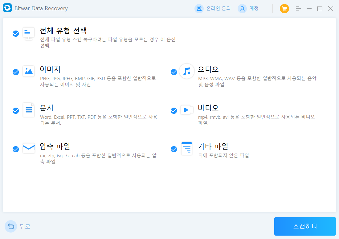 공식 홈페이지 https://kr.bitwar.net/data-recovery-software/ 에서 다운로드하십시오.